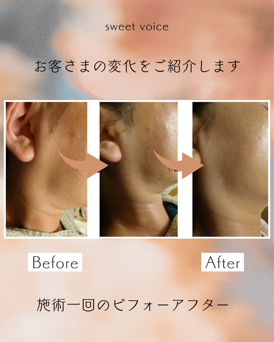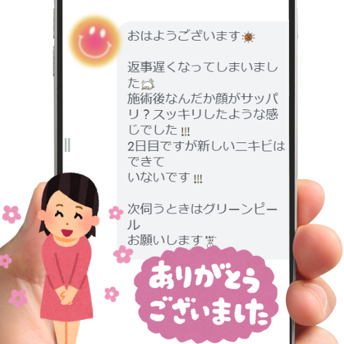 施術直後より、一週間、二週間と日を追うごとに肌の状態がアップしてきました!